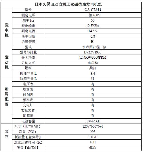久保田柴油發(fā)電機(jī) 10KW三相 GL312