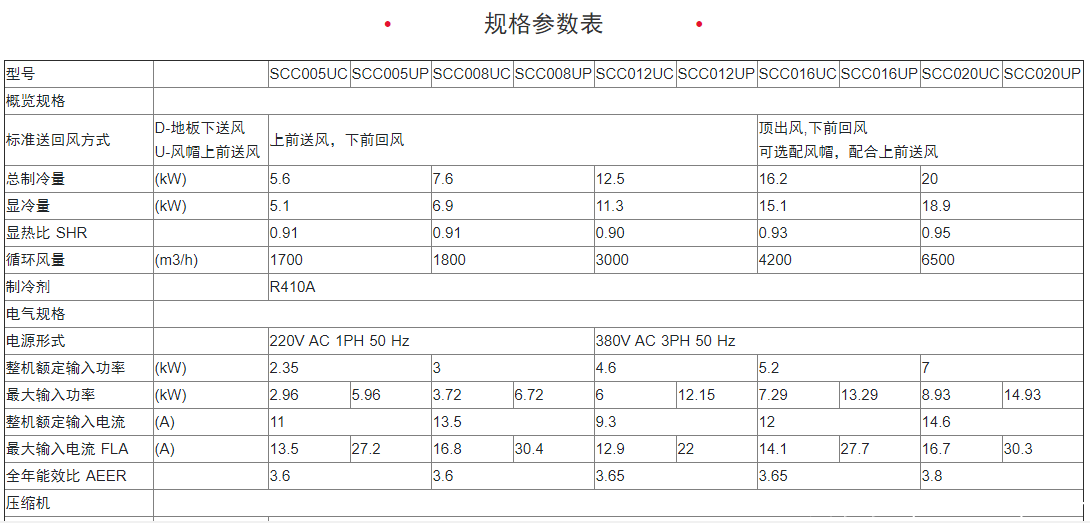 制冷量范圍涵蓋 5.6kW / 7.5kW / 12.5kW / 16.2kW / 20kW 五個量段