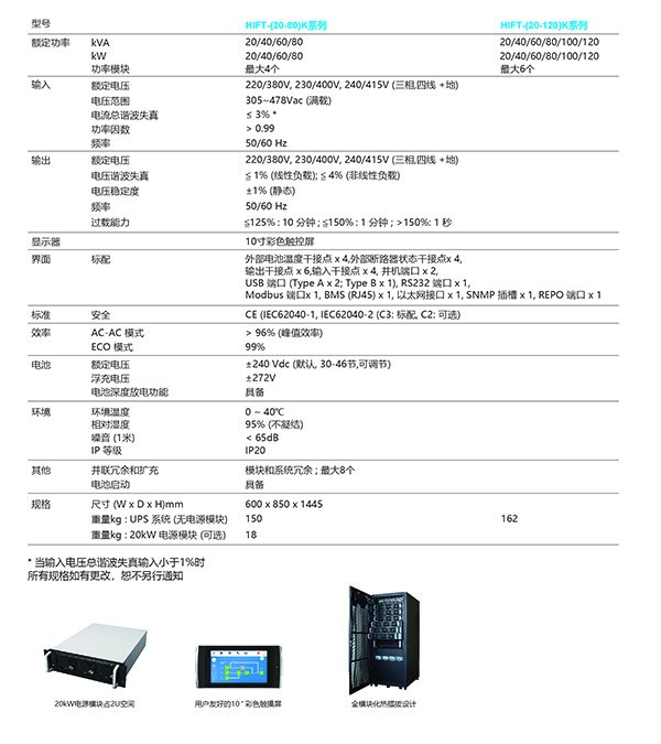 大數據、云計算、5G和媒體流應用不斷驅動高數據流量的產生,IT管理人員面臨著機架功率密度不斷增加和數據中心空間有限的挑戰。臺達創新的模塊化UPS技術滿足了客戶對高可用性、卓越性能和高效率的需求。臺達HIFT系列UPS 80/120kVA中的模塊在2U高度上達到了行業領先的功率密度,每個模塊功率20kW,提供最小的占地面積和最佳的空間利用率。它的小體積、靈活性和高功率密度是所有關鍵IT應用的理想保護。