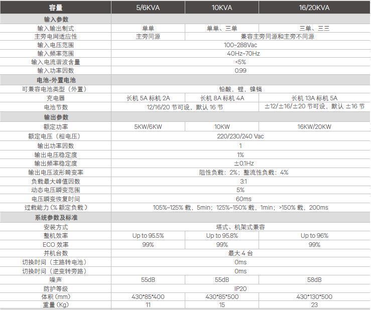 5-10KVA UPS僅2U高,深度僅400mm;16-20KVA UPS僅3U高,深度僅500mm