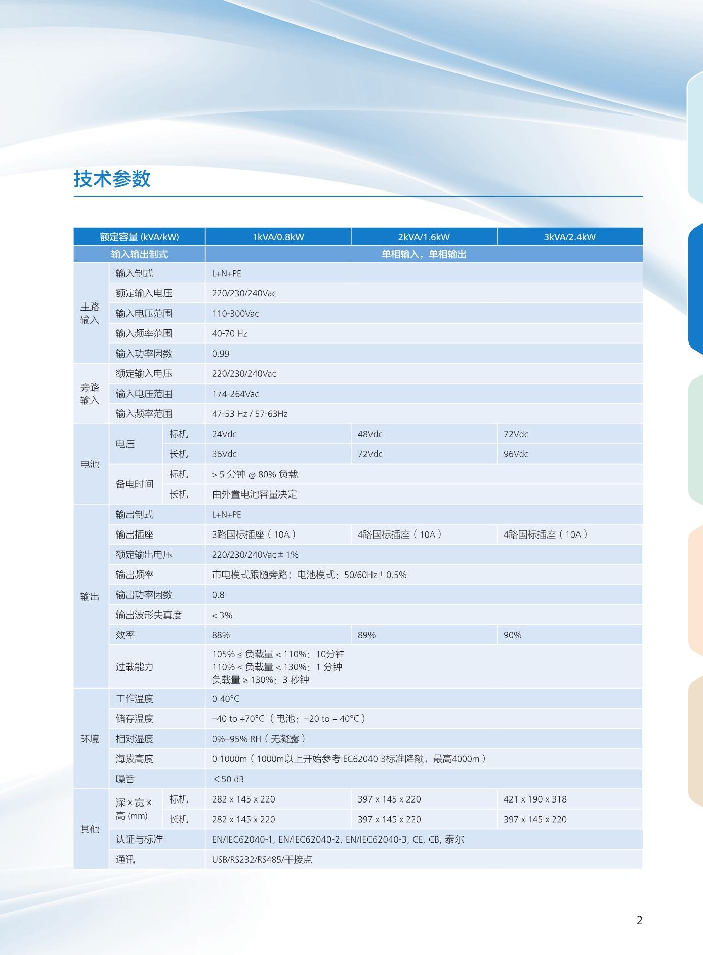 UPS2000-A 系列基于在線式雙變換技術,是小容量場景的理想供電解決方案,可全面消除各類電網問題。 支持塔式安裝,標機內置電池。
