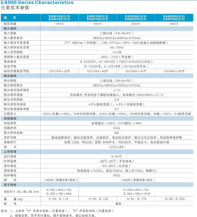 EA900系列10kVA-30kVA(3/3) UPS是易事特集最新研發成果和應用經驗,設計、制造的新一代通用型UPS電源,采用先進的DSP數字化控制技術,有效提升了產品性能和系統可靠性,并實現更高功率密度的集成和小型化。此系列產品電氣性能優異,軟硬件保護功能完善,能適應不同的電網環境,可以為各種負載提供安全可靠的電源保障。
